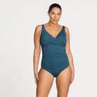 Cross over ruched front - The front of this curvy swimsuit is a cross over design that flatters the shape of your bust and adds extra wirefree support.