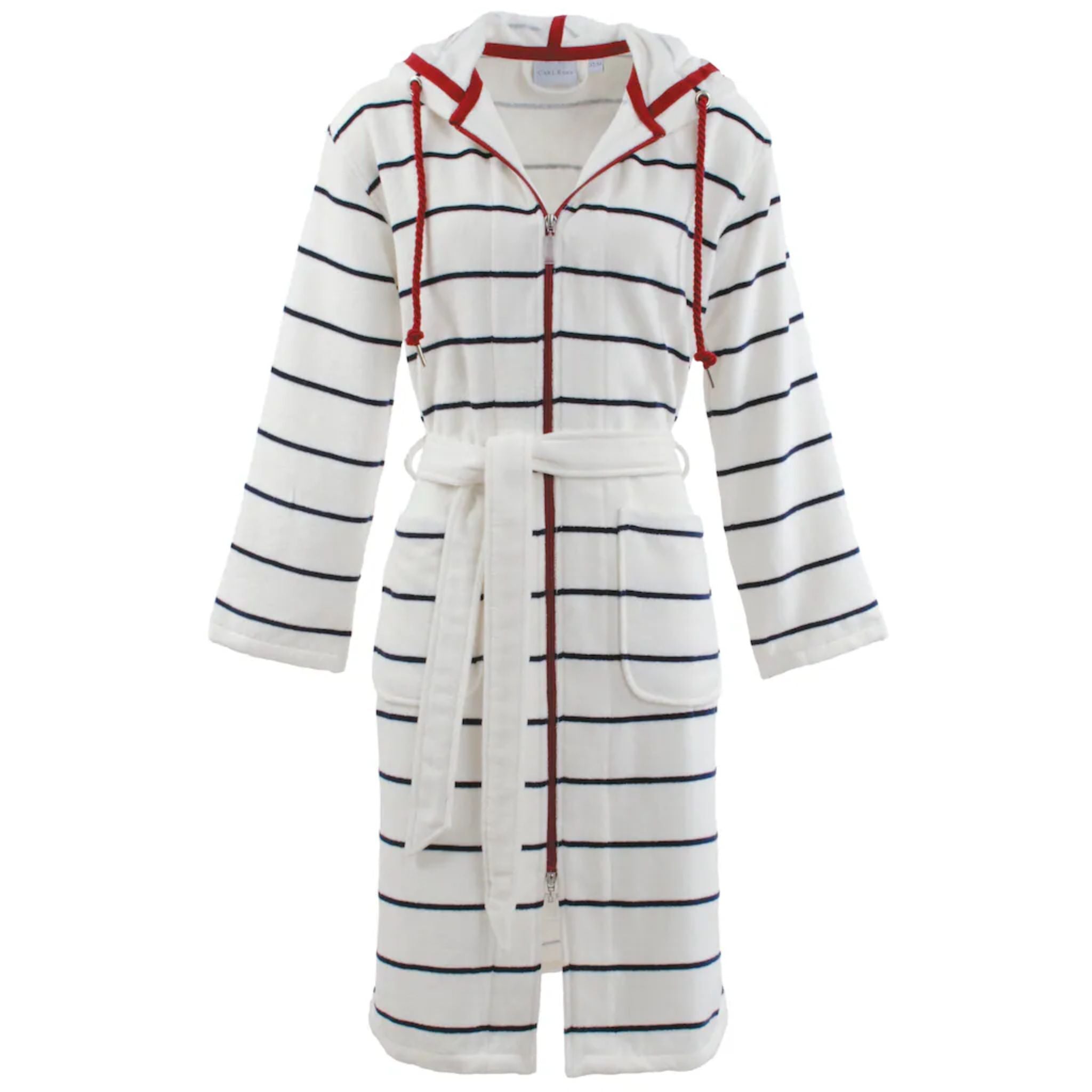 This Striped Zipper Hooded Robe features a convenient zipper closure for easy on and off. With a cozy hood, it provides extra warmth and comfort. Enjoy relaxation with this stylish and functional robe.