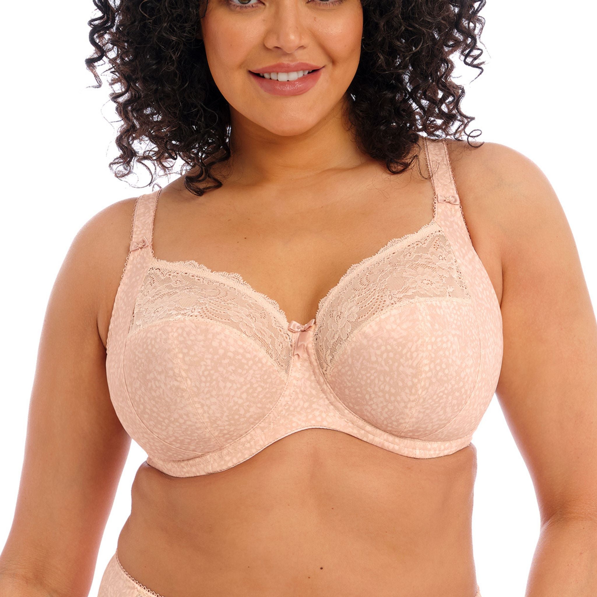 For all day comfort and support, discover Elomi's signature Morgan collection, in a Cameo Rose hue. Showcasing a subtle but gorgeous feather print design, in an array of soft light shades, the Morgan Stretch Banded Bra provides unrivalled support with beautiful stretch lace across the top of the cups and three section cups for creating the ultimate shape – Available in up to a K cup!