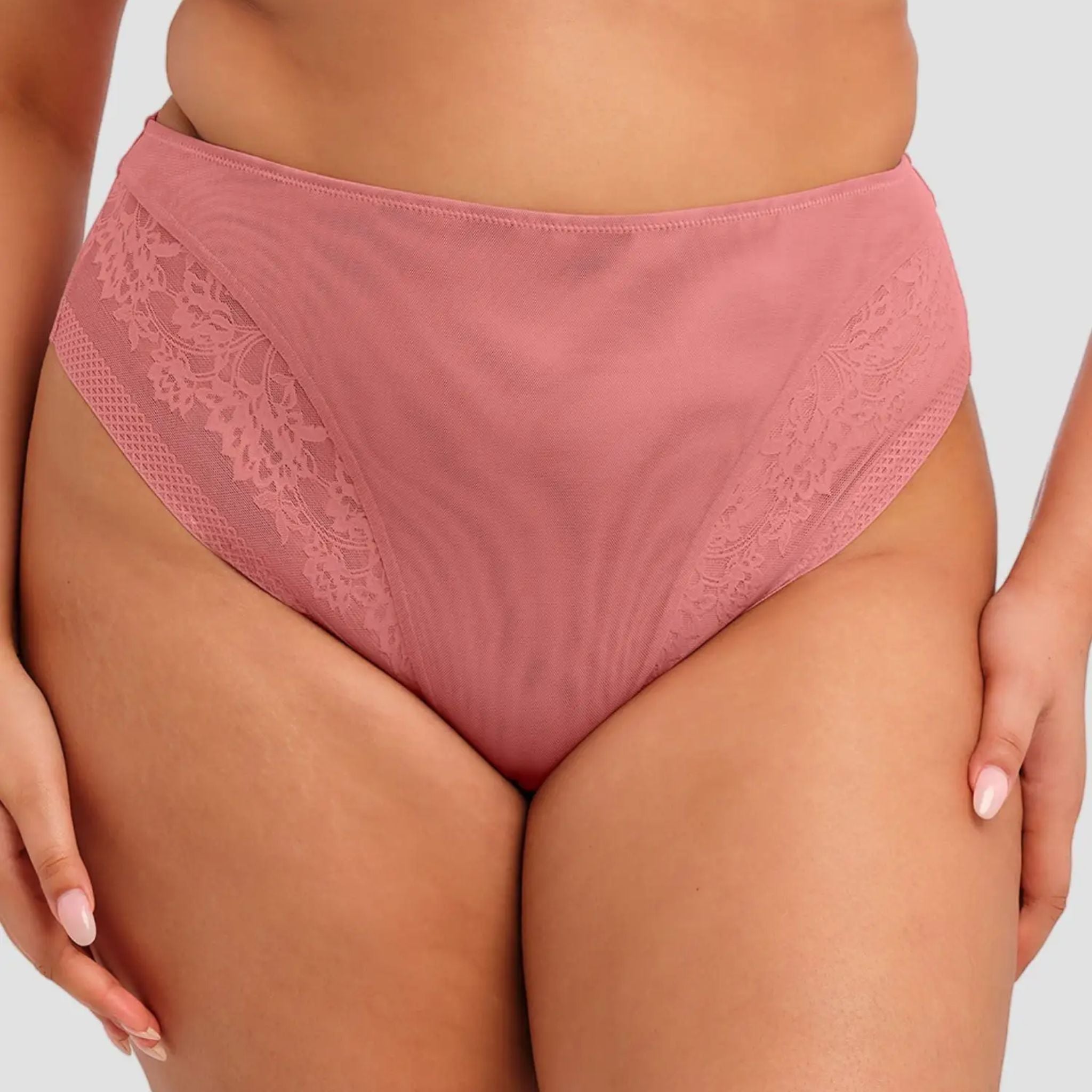 Discover Elomi’s effortlessly modern Nerina High Leg Brief in Dusty Rose. Crafted with powerful stretch lace along the leg edges that perfectly sculpts your curves with a whisper-soft touch. Plus, the encased elastics at the gusset edge ensure a gentle, barely-there feel.