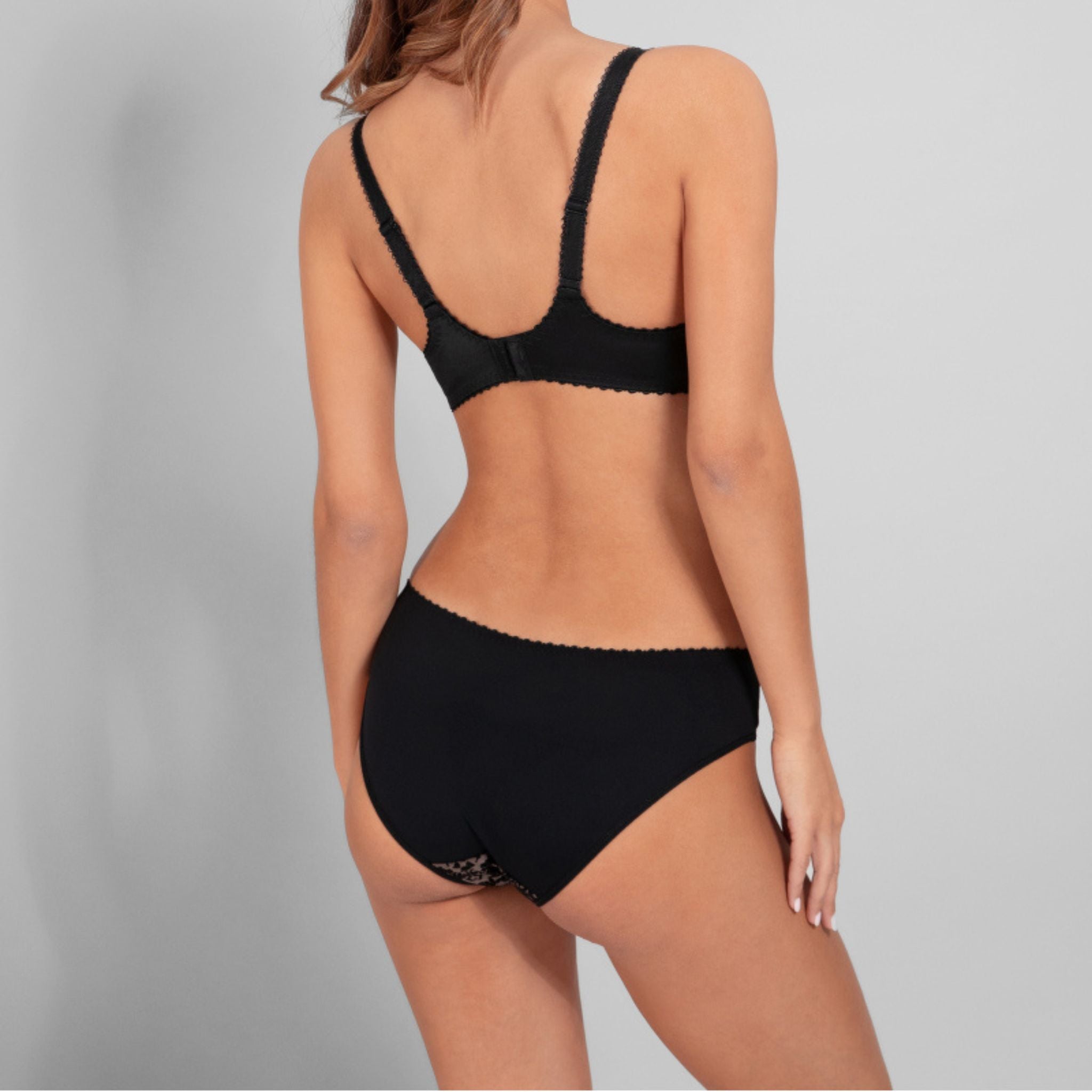 With the embroidered inserts and printed mesh, these briefs enhance the figure, and the microfibre fabric back is extremely soft. A small plumetis bow adds a pretty retro touch. Available in an ultra-seductive Black.