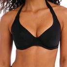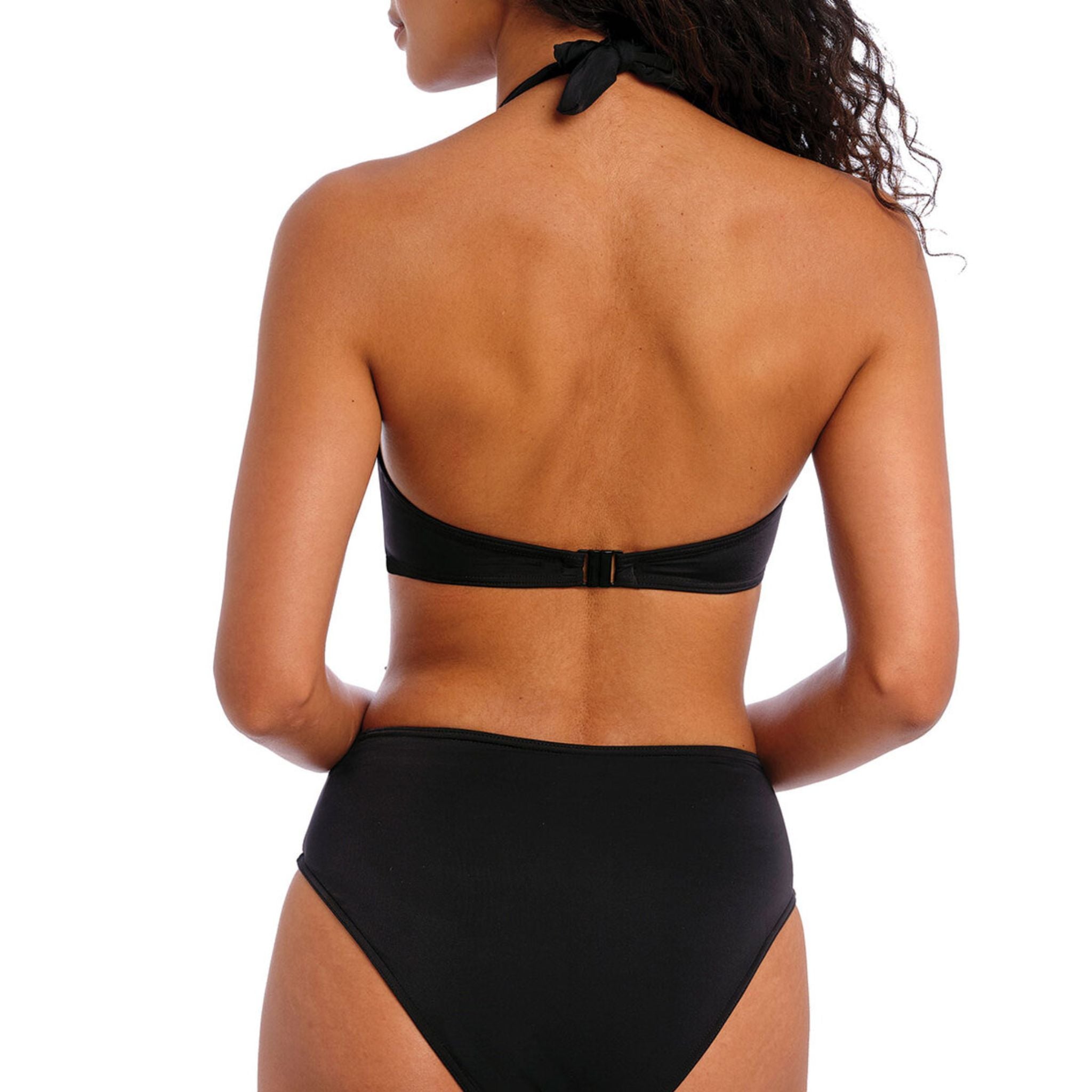 Chic in its simplicity, the Jewel Cove Halter Bikini Top is back in a Plain Black colourway, offering a low plunging neckline for less coverage and powernet lined cups for shaping and support.