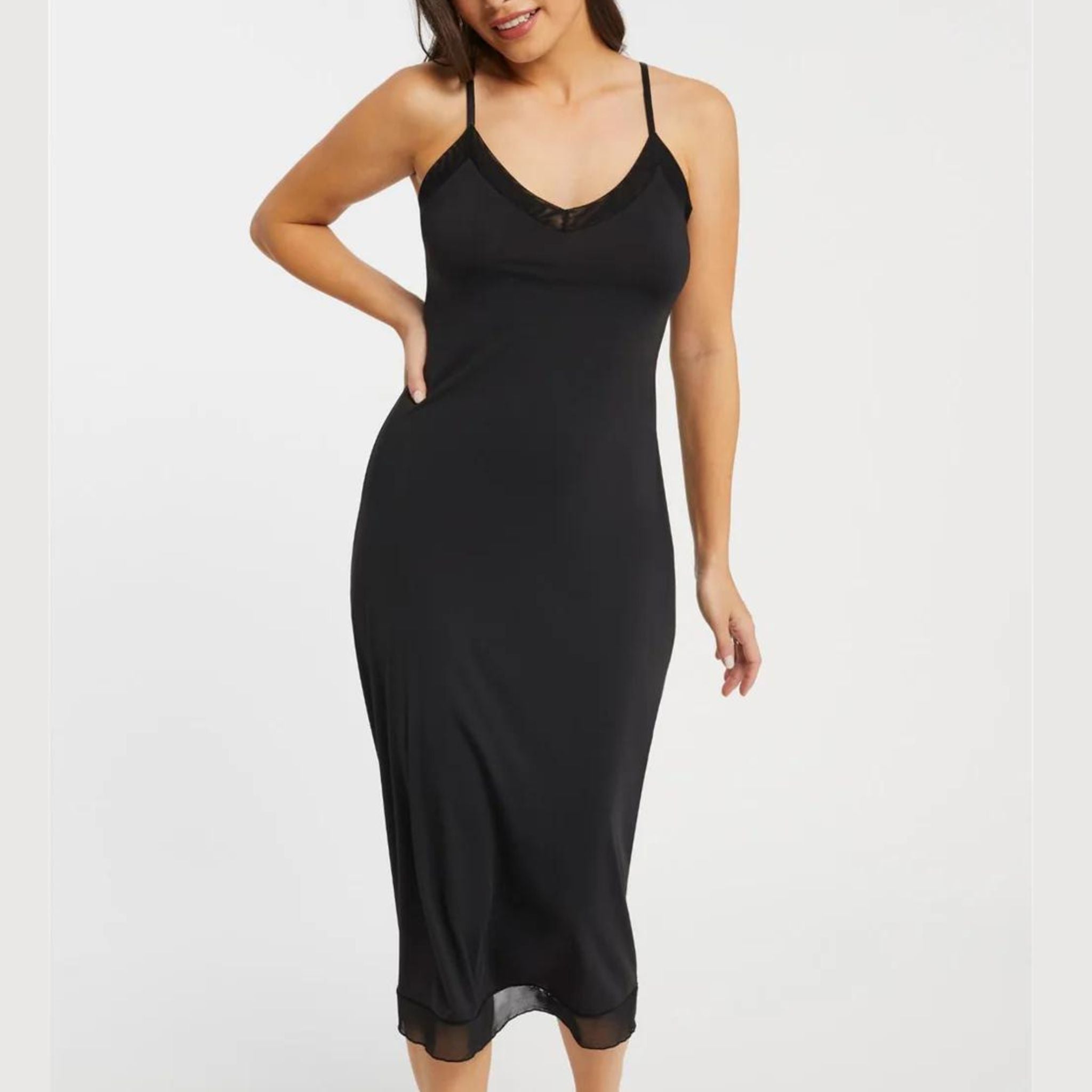 Silky soft, simple, and great for layering – this maxi slip is the ideal piece to dress up or down; featuring comfy microfiber, modern mesh, and adjustable straps. Perfect for sheer dresses and chilly nights.