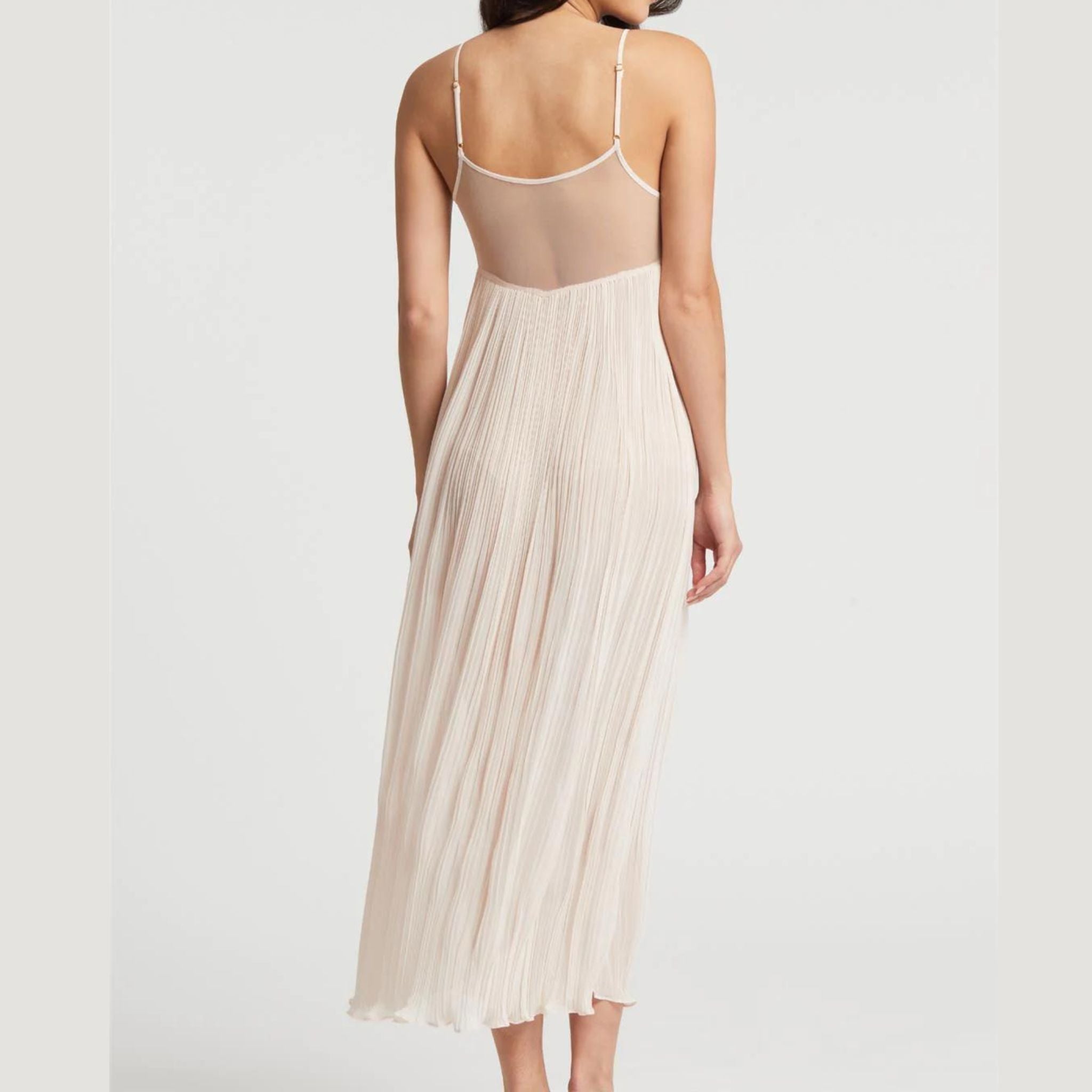 A playful yet romantic piece that uses crystal pleating to lay around the body. Under the bust lies detailed and delicate flower appliques that elongate the forgiving skirt, while the sheer back entices to be drawn closer to one’s true love. Perfect for the bride, she can feel sexy, beautiful, sophisticated and at ease in True Love. Make it a perfect pair with the True Love Robe.