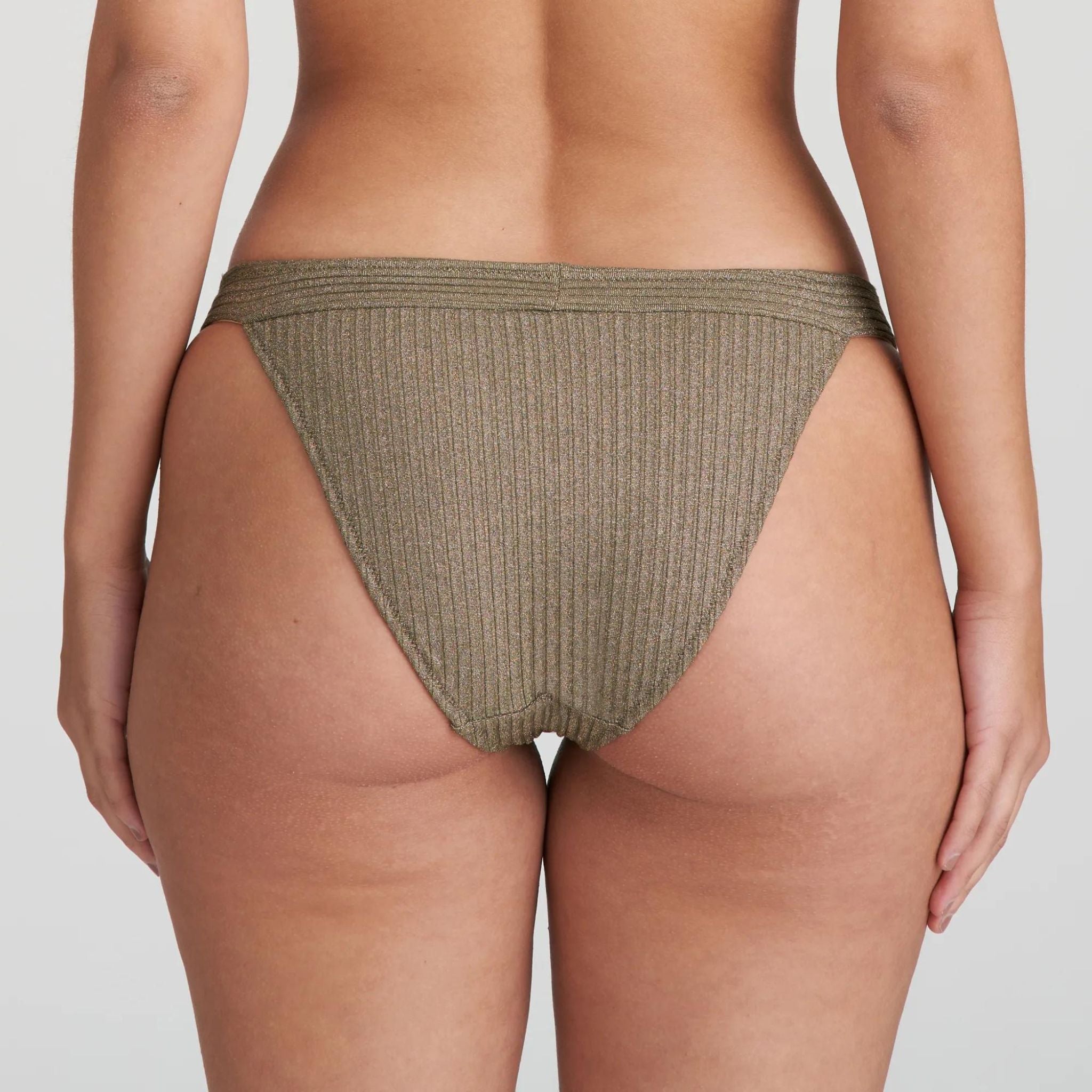 Marie Jo's special bikini bottoms are trendy briefs with a Brazilian cut and a straight waistband. Golden Olive is a warm shade of olive green that will go with any outfit, in any season.