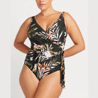 Artesands Fits Your Curves. Have curves? We have you covered in the Hayes Artesands curve fit and plus size one piece. This beautifully sculpted feminine wrap around style has a hidden shelf bra with internal support underwire to fit a D cup to DD cup, with removable soft foam cups and a front shelf bra. This one piece swimsuit has a faux cross over design with a side tie featuring the fashion look of the season. This swimsuit style allows all of the fit and support required for body sculpting and figure forming confidence for the curvy body. The Hayes curve fit and plus size one piece has 360 degree powermesh lining and good moderate bottom coverage.