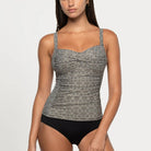 Side panels: this tankini top has contouring side panels drawing the eye inwards giving a very slimming shape to the body.