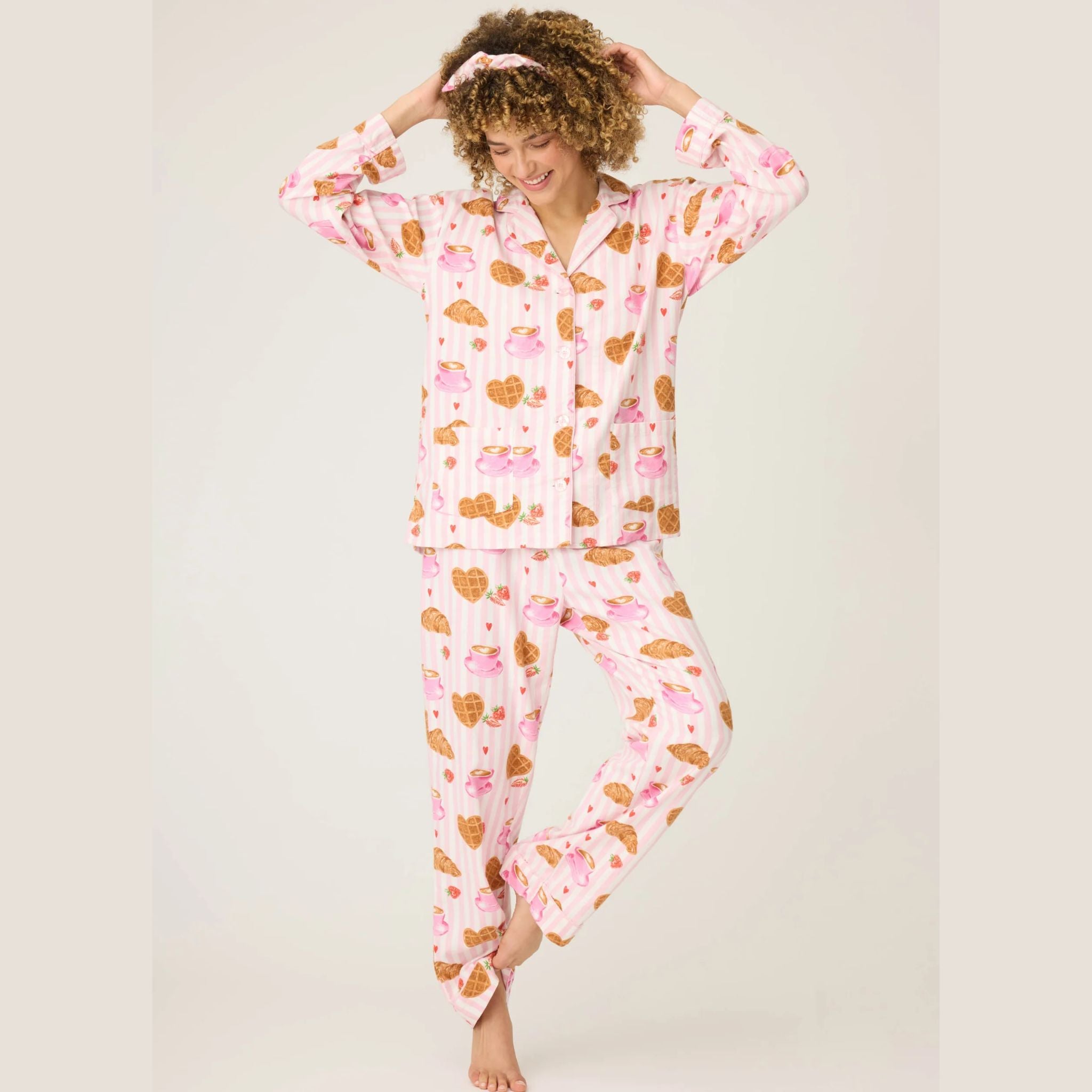 Cute as a button and silky smooth, the Naomi Pajama set features a roomy V-neck top and matching sleep shorts, perfect for warm nights and hot sleepers. Top is delicately gathered along the front and back yolks, with a cap sleeve. Shorts are high-rise, pleated front and back, with a wide and flat waistband and high-thigh hem. 4.5" inseam.