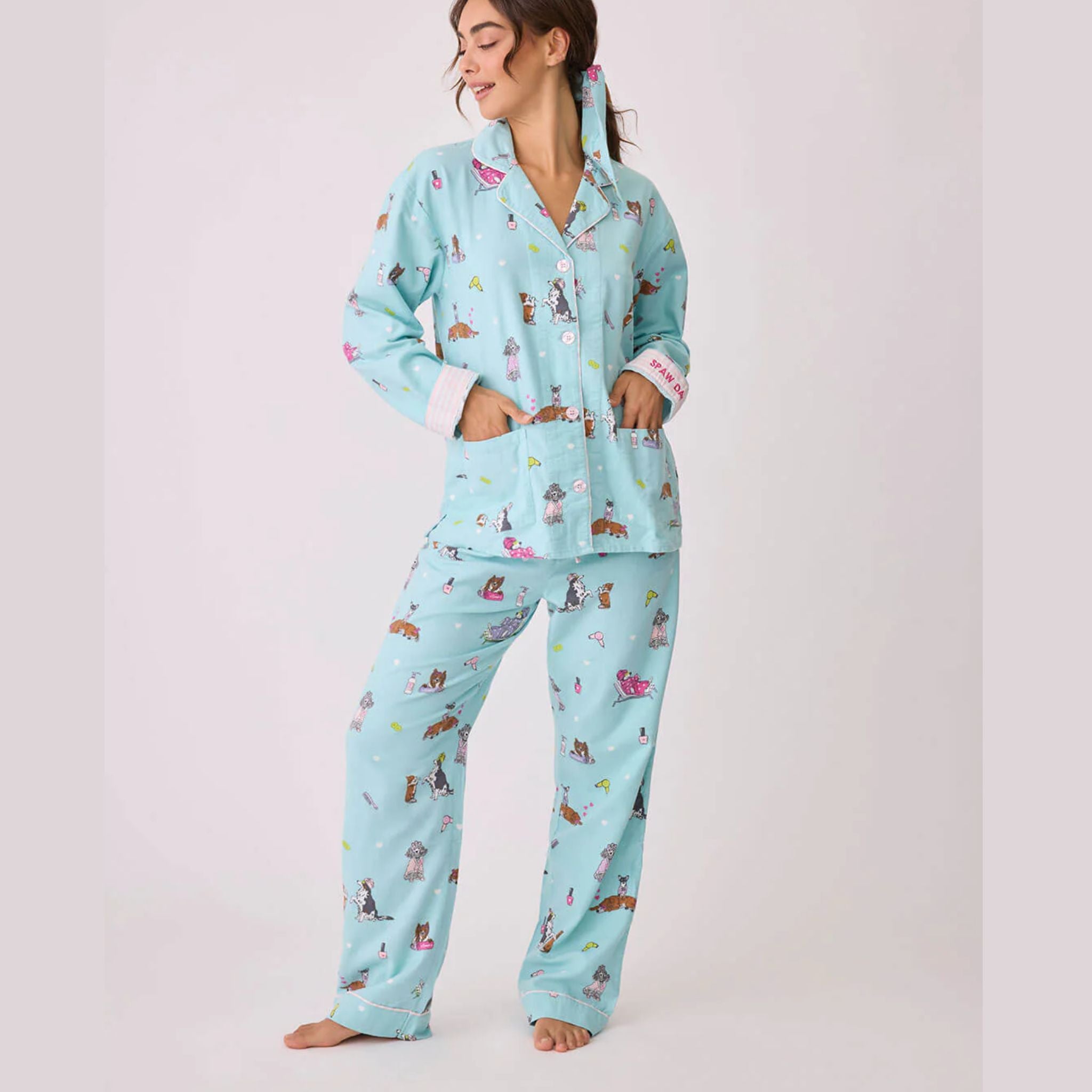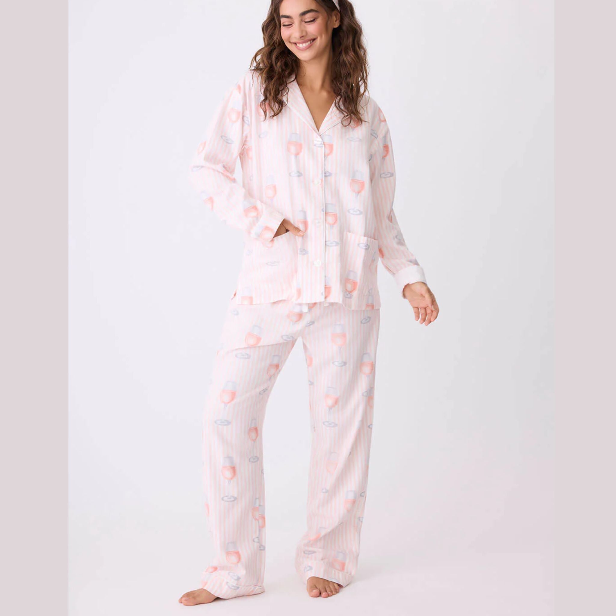 Get cozy and playful with PJ Salvages Flannel PJ Set featuring adorable dogs or Pink Rose Wine! Perfect for those chilly nights, this set combines comfort and cuteness. Sleep tight in this quirky and fun outfit.