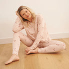 Cozy up in style with the Ladies Henley Jogger Set featuring a charming reindeer design. Embrace festive fun while staying relaxed and stylish all day long.