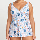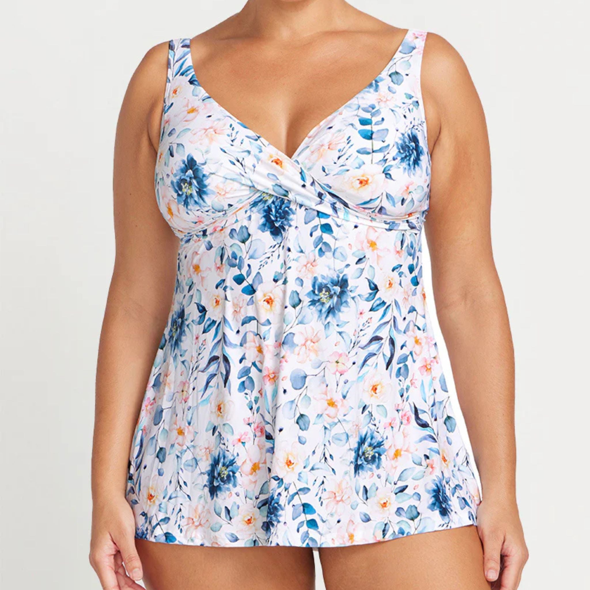 Cross over front - The front of this curvy swimsuit is a cross over design that flatters the shape of your bust and adds extra wirefree support.