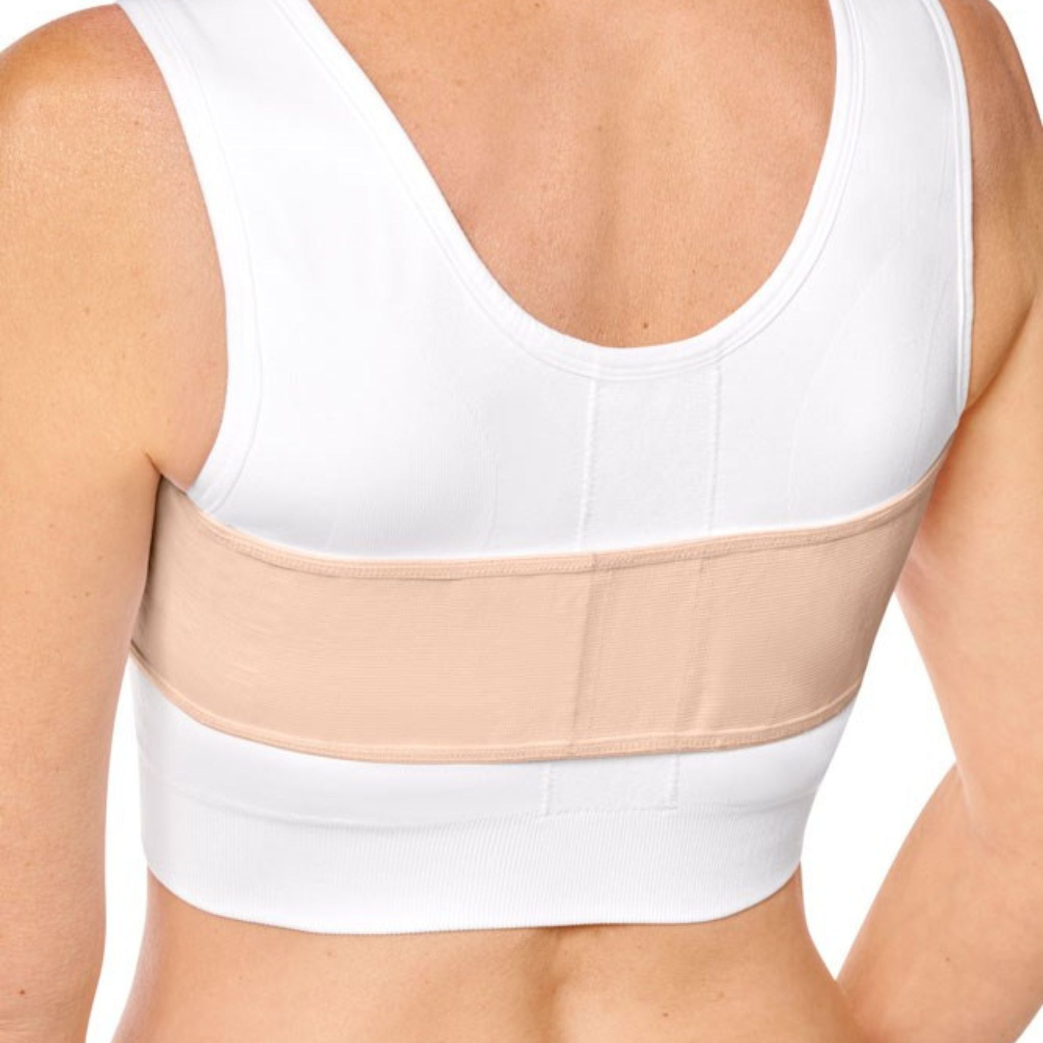 The Anatomical Compression belt helps to achieve optimal surgery results by keeping the post-surgery breast(s) in place and preventing implants from moving during the healing process. Anatomically formed, made of a strong stretch fabric, provides an ergonomic fit, especially under the arms. Prevents pressure marks and skin irritation due to use of skin-friendly fabrics and variable adjustment at the front. Promotes the healing process by relieving the lymph drainage channels.
