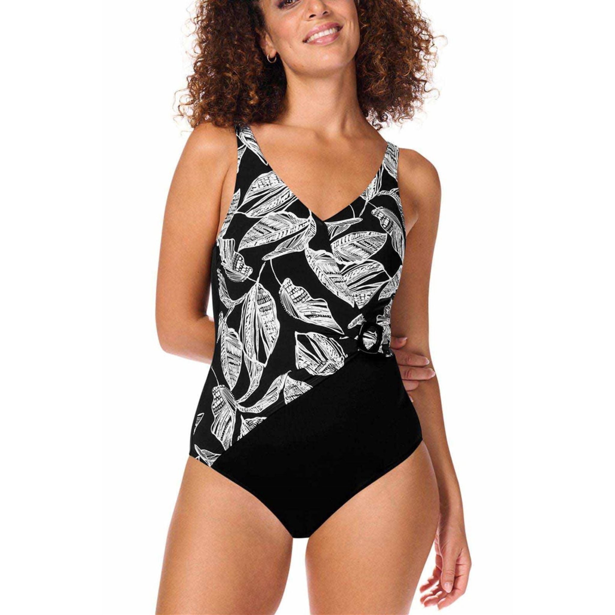 • The Lanzarote Half-Bodice Swimsuit is a re-imagining of our bestseller style, featuring an elegant leaf print with wood optic accessories at the waist, offering a unique and stylish look