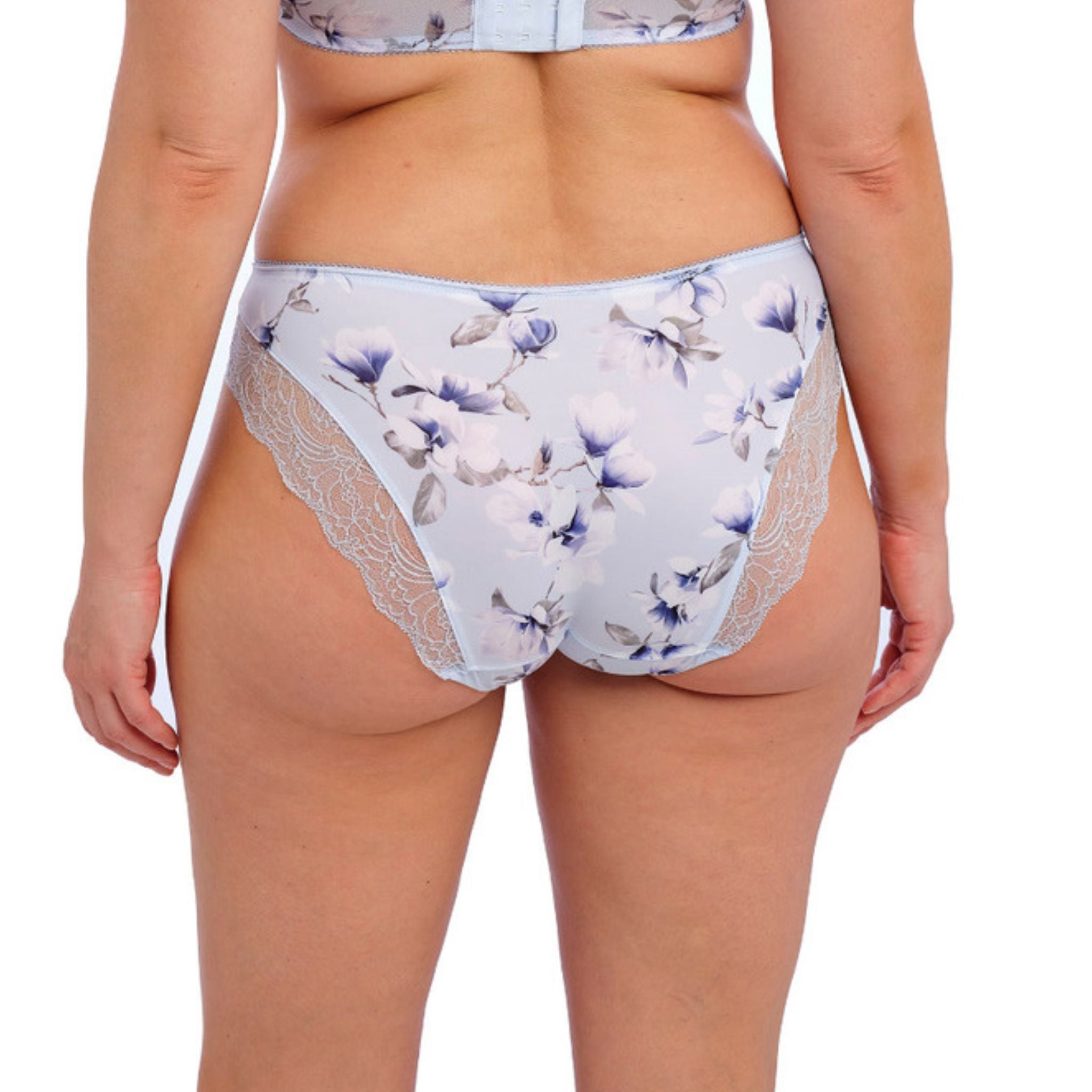 Add a touch of floral to your lingerie rotation with Fantasies much-loved Lucia collection in Opal. Dainty florals in silvery white shades cascade across a baby blue base. Fantasies Brief is complete with stretch lace at the front and back leg for an added touch of luxury. Complete the look by pairing with the Lucia Side Support Bra.